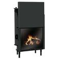Каминная топка EdilKamin H2Oceano KW28 V.A. с водяным контуром предназначена для подключения к закрытой системе. Водяной контур полностью охватывает топку, увеличивая поверхность теплообмена. Вода в нагревается, циркулируя в зазоре, идущем вдоль всей полукруглой стены и свода очага. Зазор выполнен из толстого стального листа. Встроен змеевик термической разгрузки и предохранительный клапан.